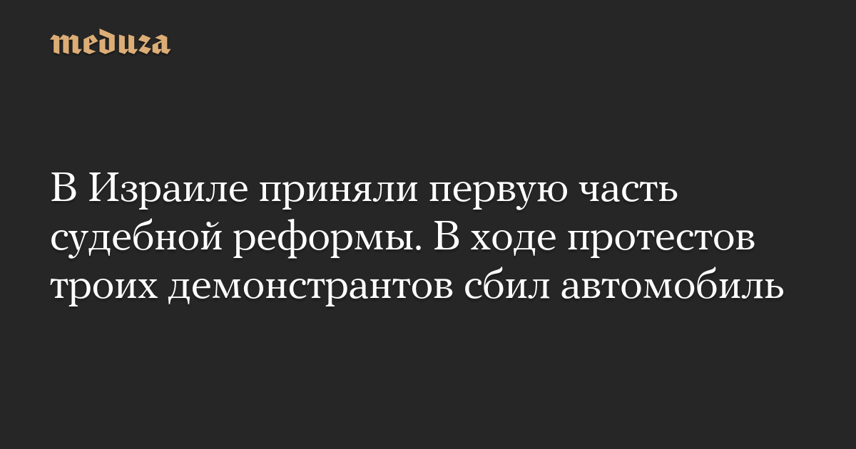 В Израиле приняли первую часть судебной реформы. В ходе протестов троих демонстрантов сбил автомобиль