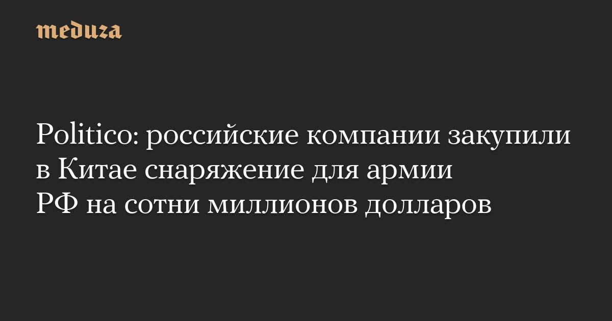 Politico: российские компании закупили в Китае снаряжение для армии РФ на сотни миллионов долларов