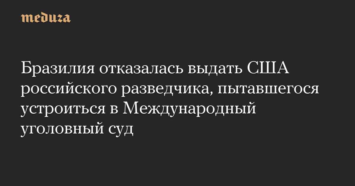 Бразилия отказалась выдать США российского разведчика, пытавшегося устроиться в Международный уголовный суд