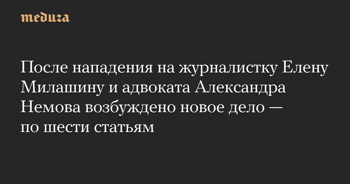 После нападения на журналистку Елену Милашину и адвоката Александра Немова возбуждено новое дело — по шести статьям