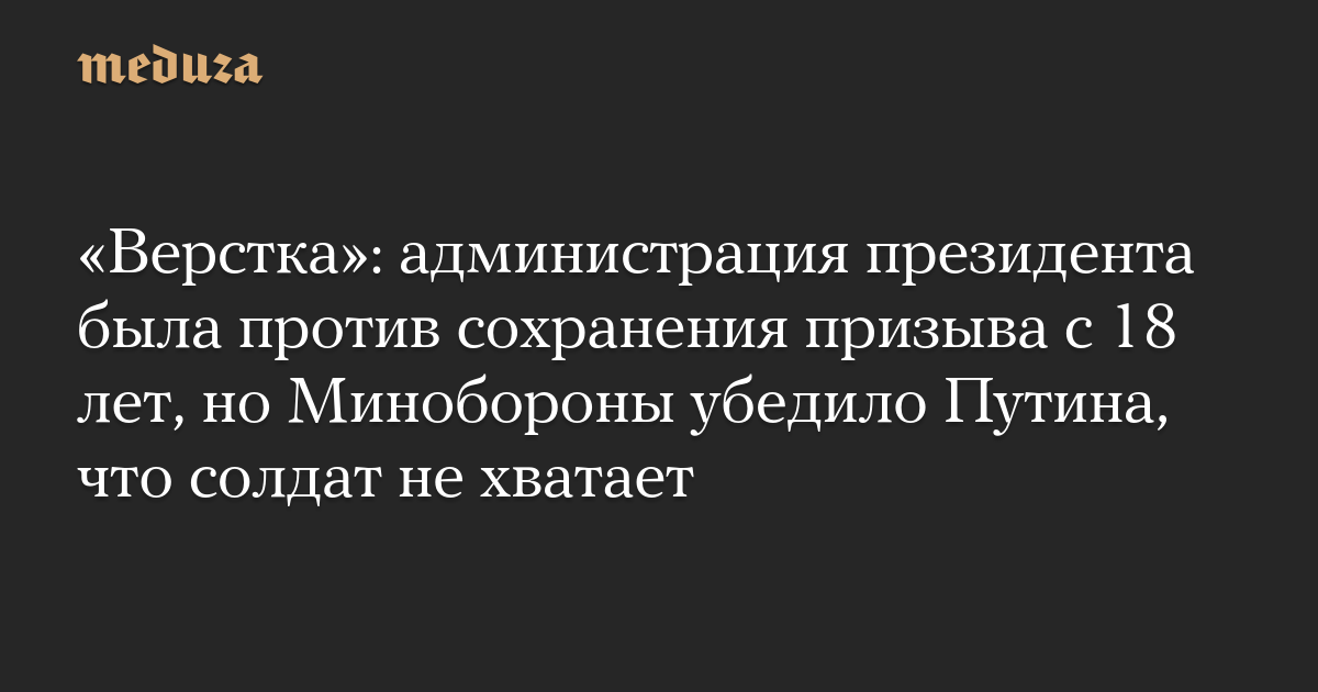 Политический блок администрации президента был против сохранения призыва с 18 лет, однако Минобороны убедило Владимира Путина, что армии не хватает солдат, сообщает «Верстка» со ссылкой на свои источники.