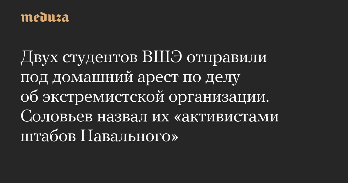 Двух студентов ВШЭ отправили под домашний арест по делу об экстремистской организации. Соловьев назвал их «активистами штабов Навального»