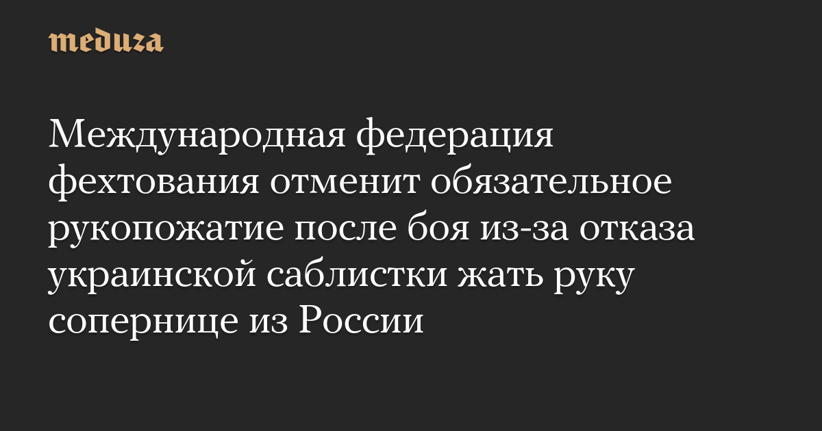 Международная федерация фехтования отменит обязательное рукопожатие после боя из-за отказа украинской саблистки жать руку сопернице из России