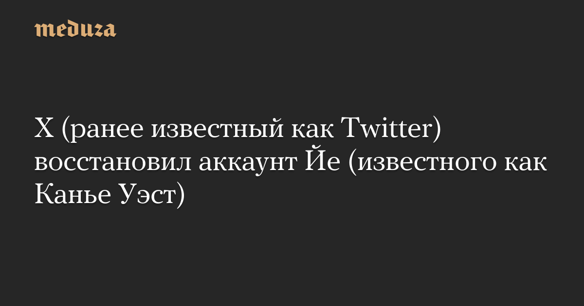 Социальная сеть X, ранее известная как Twitter, восстановила заблокированный ранее аккаунт рэпера Канье Уэста, сменившего имя на Йе.