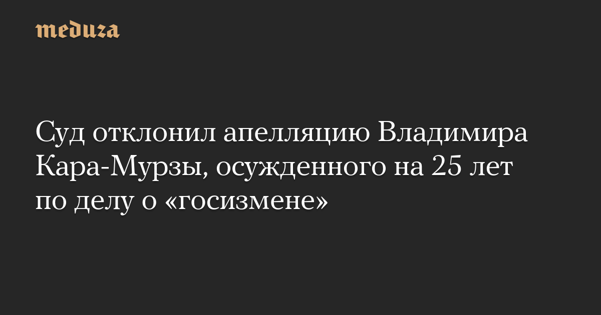 Суд отклонил апелляцию Владимира Кара-Мурзы, осужденного на 25 лет по делу о «госизмене»