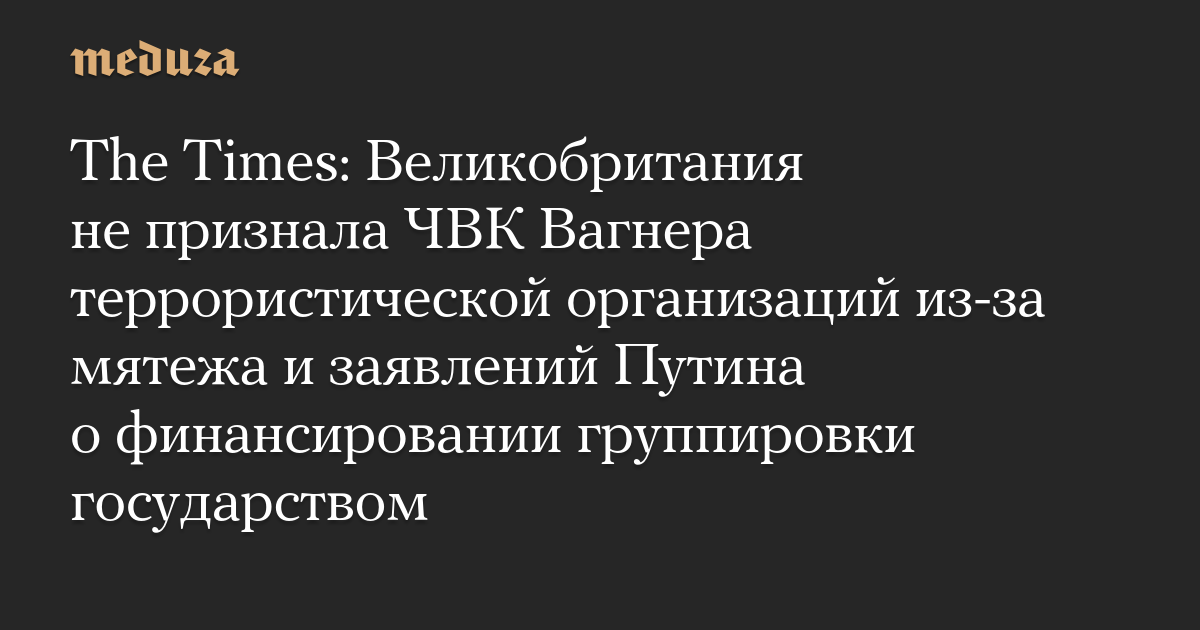 The Times: Великобритания не признала ЧВК Вагнера террористической организаций из-за мятежа и заявлений Путина о финансировании группировки государством