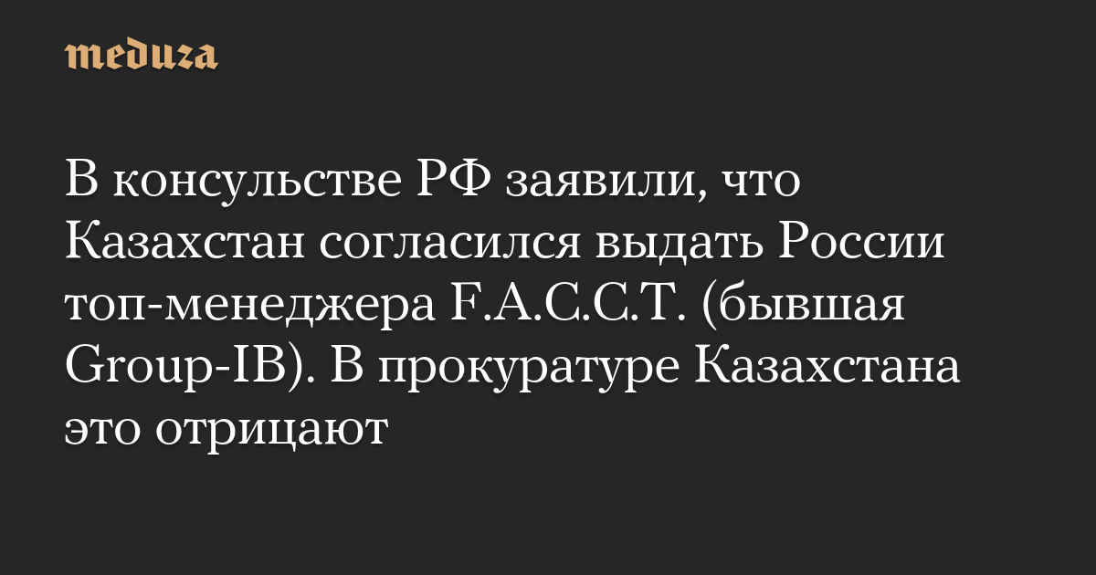 В консульстве РФ заявили, что Казахстан согласился выдать России топ-менеджера F.A.C.C.T. (бывшая Group-IB). В прокуратуре Казахстана это отрицают