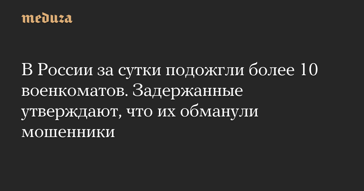 В России за сутки подожгли более 10 военкоматов. Задержанные утверждают, что их обманули мошенники