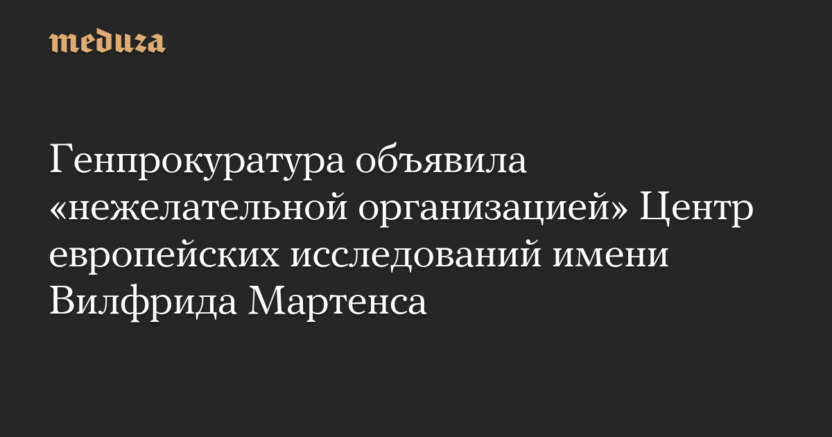 Генпрокуратура России объявила деятельность Центра европейских исследований имени Вилфрида Мартенса («Martens Centre») «нежелательной» на территории РФ, сообщает пресс-службы ведомства.