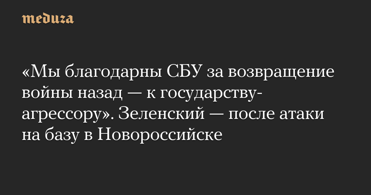 «Мы благодарны СБУ за возвращение войны назад — к государству-агрессору». Зеленский — после атаки на базу в Новороссийске