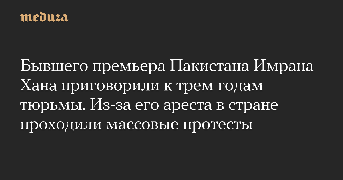 Бывшего премьера Пакистана Имрана Хана приговорили к трем годам тюрьмы. Из-за его ареста в стране проходили массовые протесты