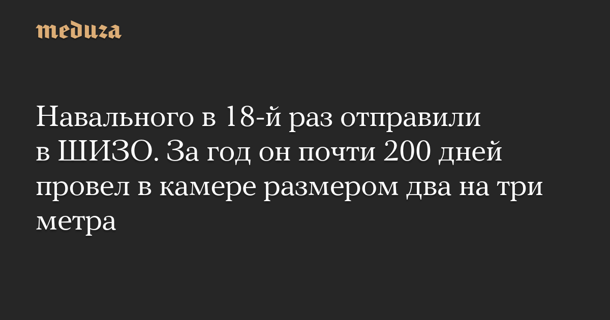 Ярмыш отметила, что Навального отправляют в изолятор в 18-й раз, и в сумме он проведет в ШИЗО 207 дней. Впервые Навального отправили в изолятор почти год назад, 15 августа 2022 года, вскоре после перевода в колонию в Мелехово.