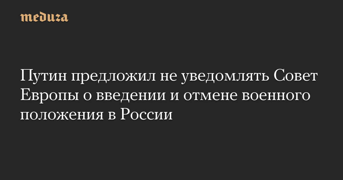 Путин предложил не уведомлять Совет Европы о введении и отмене военного положения в России
