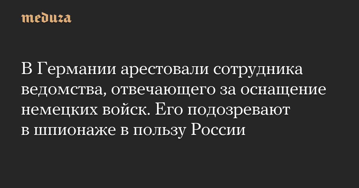 В Германии арестовали сотрудника ведомства, отвечающего за оснащение немецких войск. Его подозревают в шпионаже в пользу России