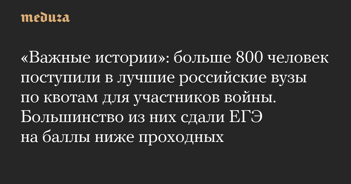 «Важные истории»: больше 800 человек поступили в лучшие российские вузы по квотам для участников войны. Большинство из них сдали ЕГЭ на баллы ниже проходных
