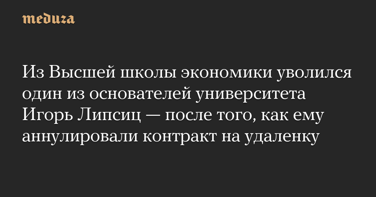 Доктор экономических наук Игорь Липсиц сообщил, что уволился из Национального исследовательского университета «Высшая школа экономики» после того, как руководство вуза аннулировало его контракт на дистанционную работу. Об этом он написал в телеграм-канале.