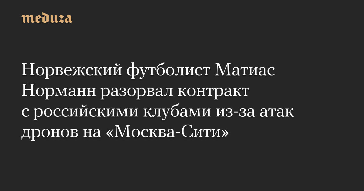 Норвежский футболист Матиас Норманн разорвал контракт с российскими клубами из-за атак дронов на «Москва-Сити»