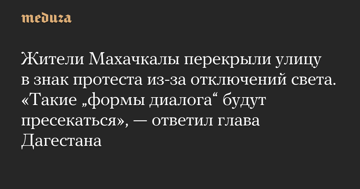 Жители Махачкалы перекрыли улицу в знак протеста из-за отключений света. «Такие „формы диалога“ будут пресекаться», — ответил глава Дагестана