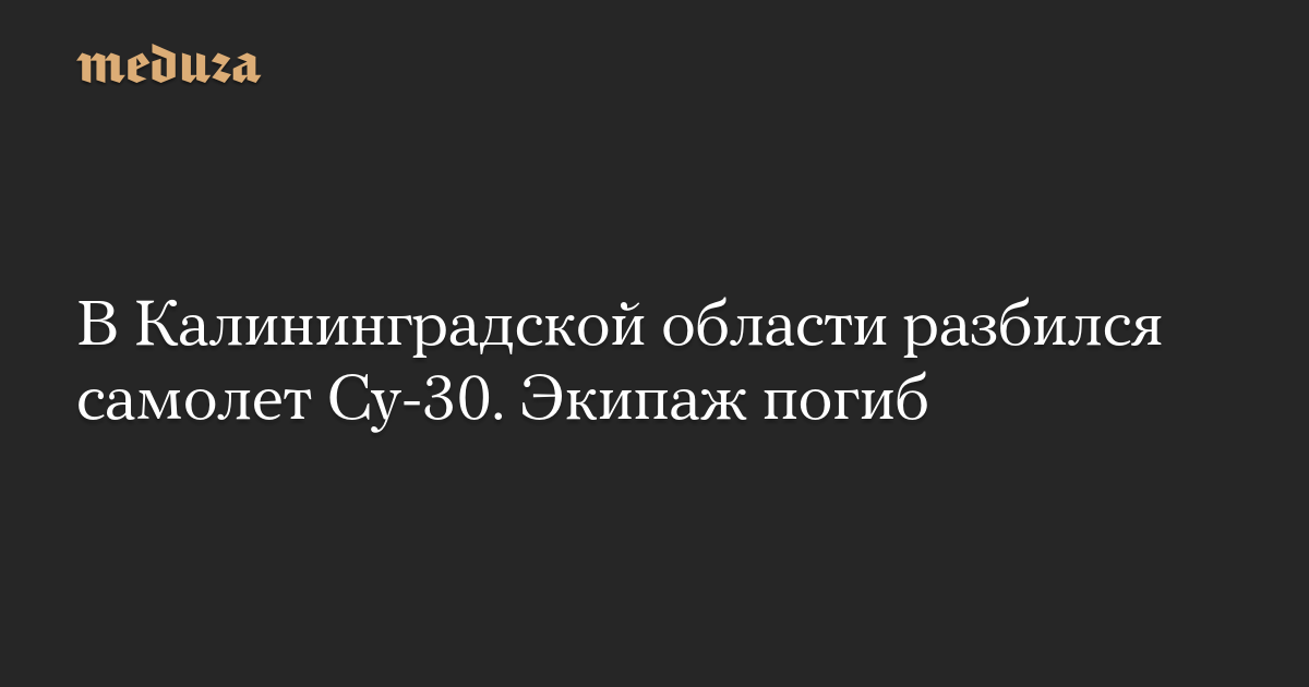 В Калининградской области при выполнении учебно-тренировочного полета потерпел крушение самолет Су-30, сообщает РИА Новости со ссылкой на пресс-службу Западного военного округа. По данным ведомства, экипаж погиб.
