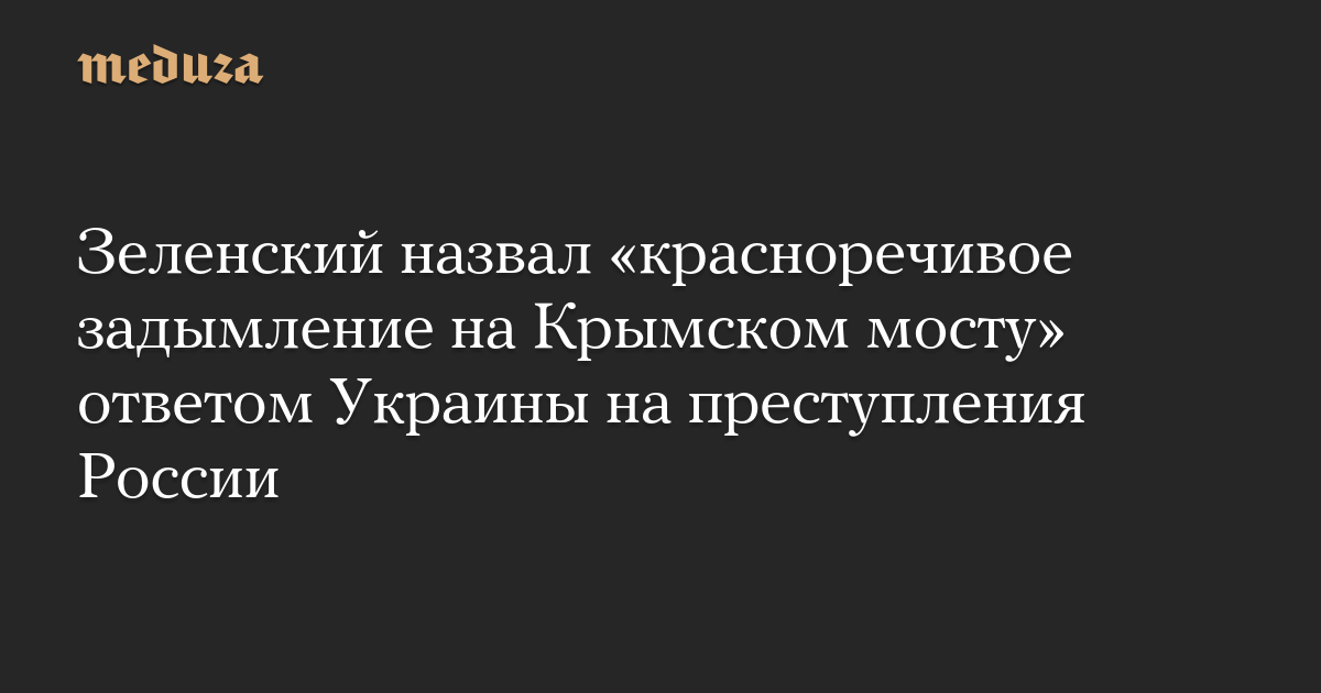 Зеленский назвал «красноречивое задымление на Крымском мосту» ответом Украины на преступления России