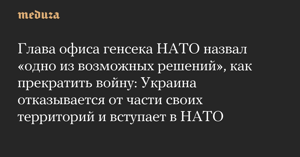 Глава офиса генсека НАТО назвал «одно из возможных решений», как прекратить войну: Украина отказывается от части своих территорий и вступает в НАТО