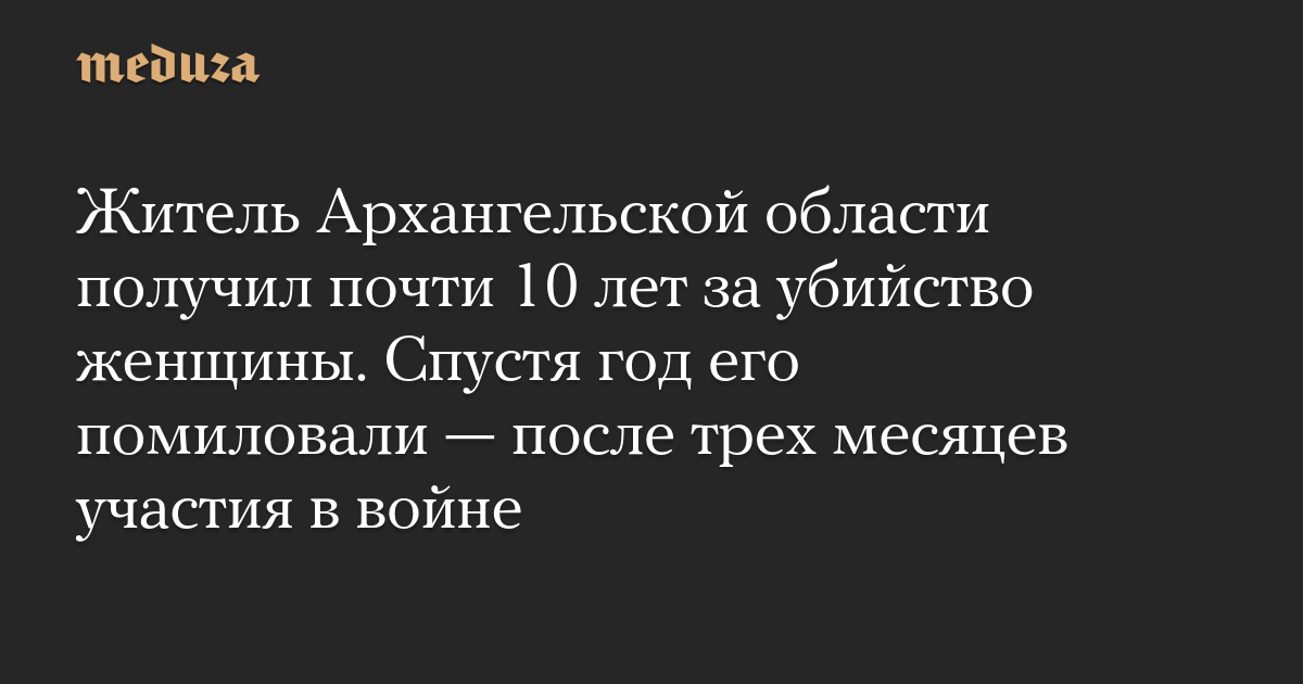 Житель Архангельской области получил почти 10 лет за убийство женщины. Спустя год его помиловали — после трех месяцев участия в войне