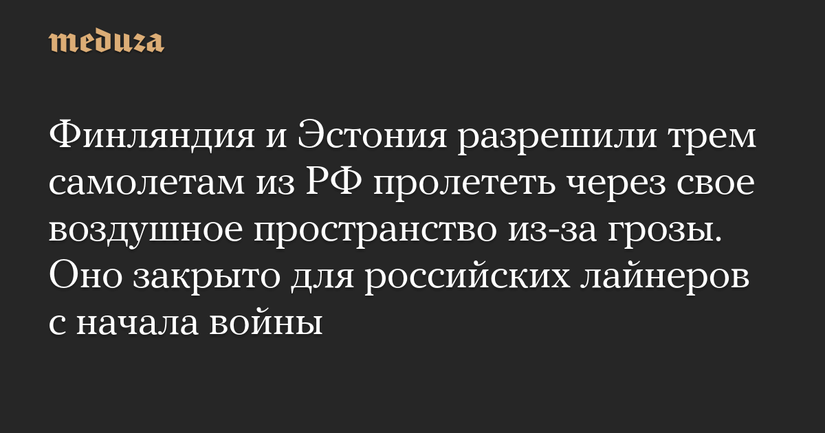Финляндия и Эстония разрешили трем самолетам из РФ пролететь через свое воздушное пространство из-за грозы. Оно закрыто для российских лайнеров с начала войны