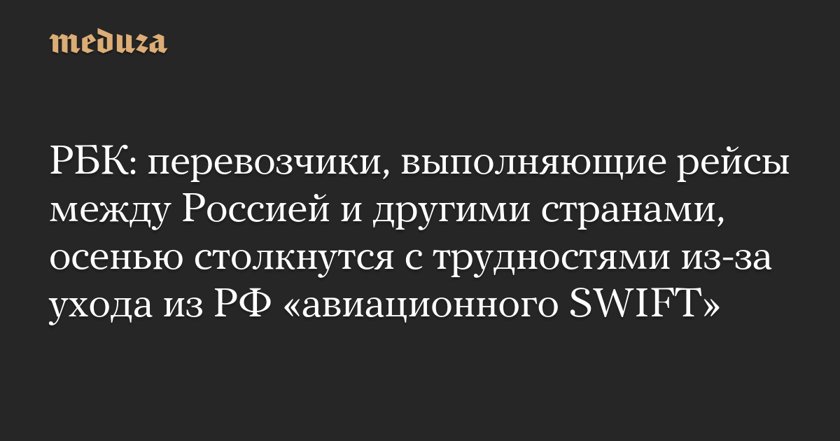 РБК: перевозчики, выполняющие рейсы между Россией и другими странами, осенью столкнутся с трудностями из-за ухода из РФ «авиационного SWIFT»