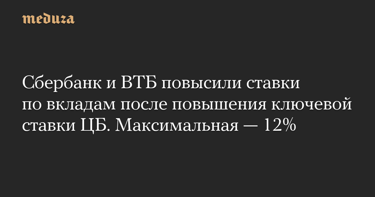 Сбербанк и ВТБ повысили ставки по вкладам после повышения ключевой ставки ЦБ. Максимальная — 12%