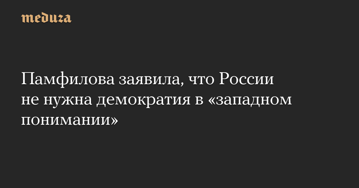 «Для меня что такое демократия — это просто механизм, способ формирования власти путем выборов. Что сейчас происходит на Западе: это демократия — не власть большинства, это власть меньшинства. Я бы согласилась с Дмитрием Сергеевичем, у нас точно не такая система, как на Западе, и не надо нам [такой]», — ответила Памфилова на этот вопрос.