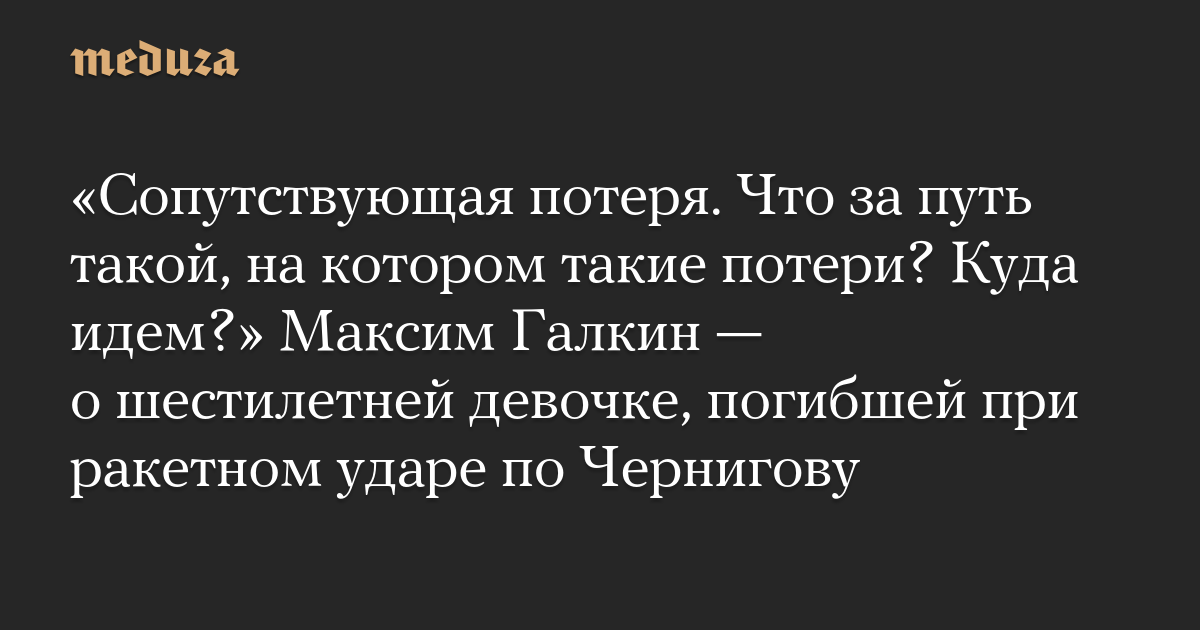 «Сопутствующая потеря. Что за путь такой, на котором такие потери? Куда идем?» Максим Галкин — о шестилетней девочке, погибшей при ракетном ударе по Чернигову