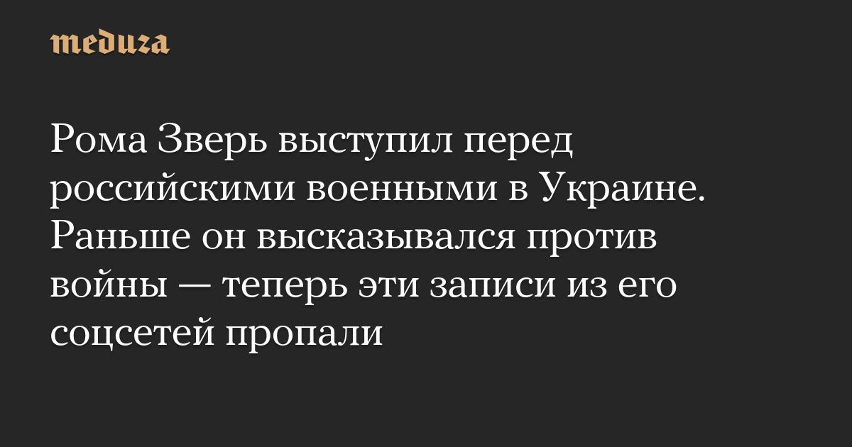 Рома Зверь выступил перед российскими военными в Украине. Раньше он высказывался против войны — теперь эти записи из его соцсетей пропали