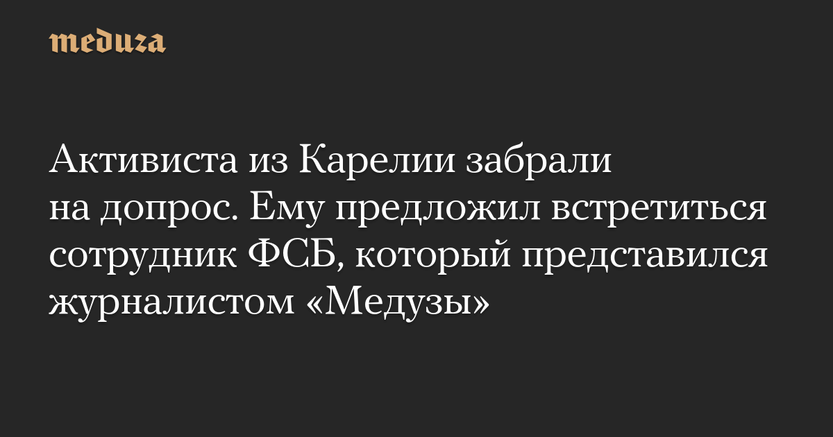 Активиста из Карелии забрали на допрос. Ему предложил встретиться сотрудник ФСБ, который представился журналистом «Медузы»