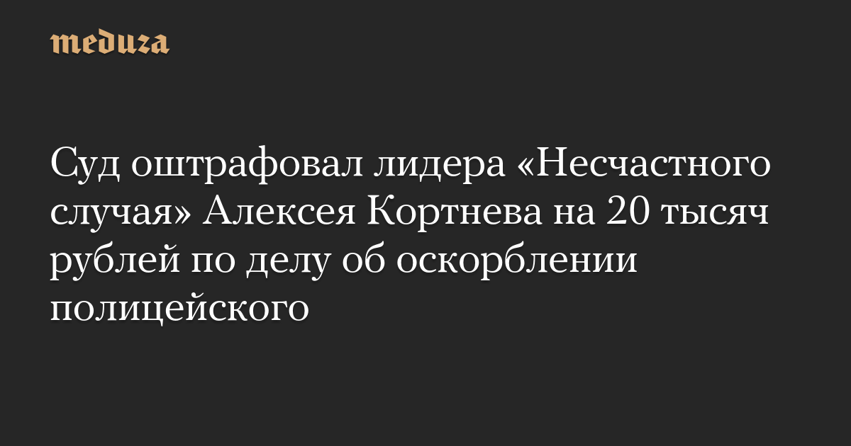 Новосибирский суд назначил лидеру «Несчастного случая» Алексею Кортневу штраф в 20 тысяч рублей по уголовному делу об оскорблении полицейского, сообщает РБК.