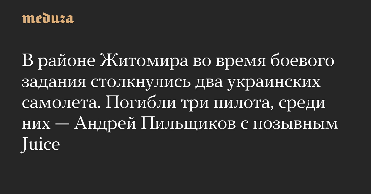 В районе Житомира во время боевого задания столкнулись два украинских самолета. Погибли три пилота, среди них — Андрей Пильщиков с позывным Juice