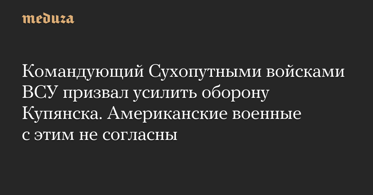 Командующий Сухопутными войсками ВСУ призвал усилить оборону Купянска. Американские военные с этим не согласны