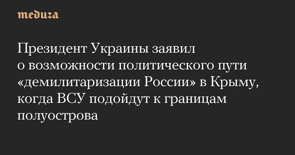Президент Украины заявил о возможности политического пути «демилитаризации России» в Крыму, когда ВСУ подойдут к границам полуострова