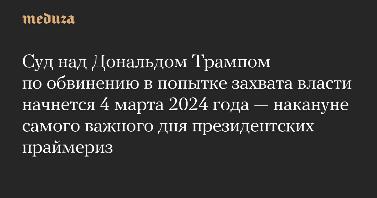 Процесс над Трампом начнется в разгар президентских праймериз, которые будут проводиться с января по июнь. 5 марта, на следующий день после первого заседания суда, состоится Супервторник — в этот день праймериз пройдут в полутора десятках штатов.