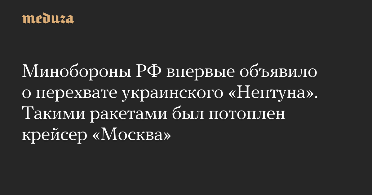 Минобороны РФ впервые объявило о перехвате украинского «Нептуна». Такими ракетами был потоплен крейсер «Москва»