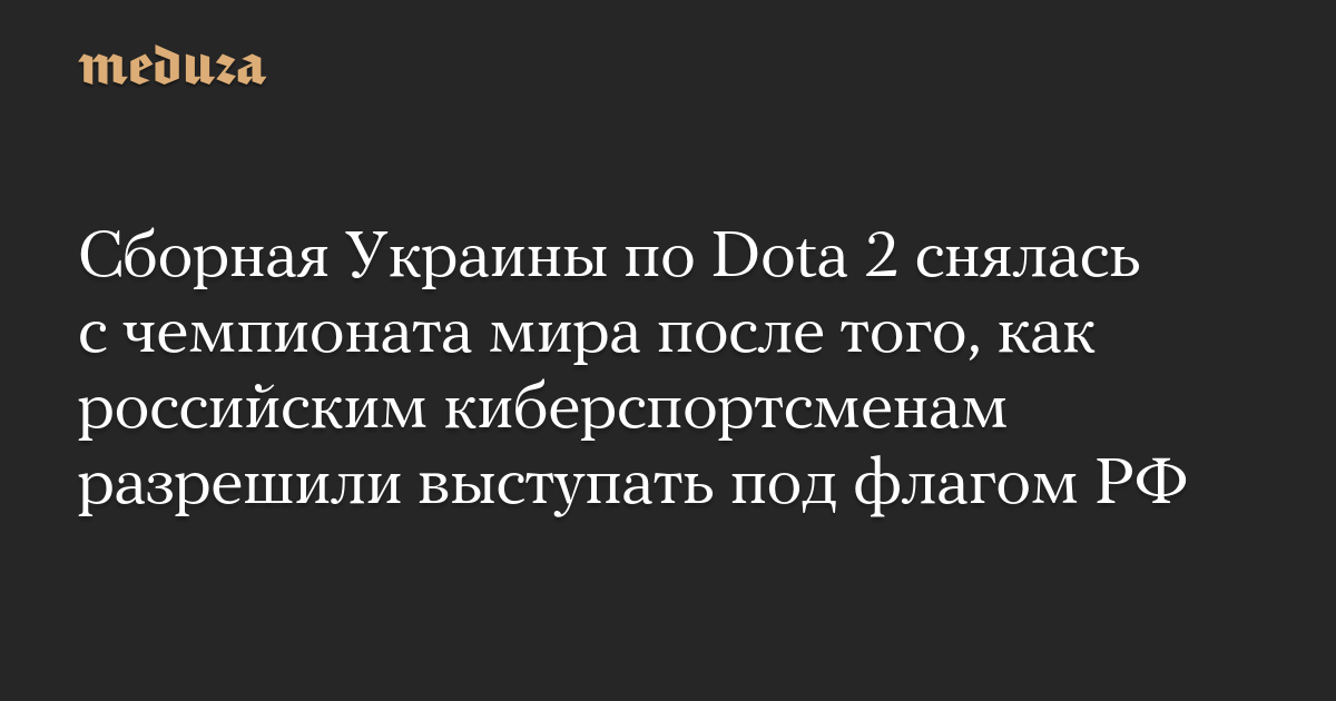 Сборная Украины по Dota 2 снялась с чемпионата мира после того, как российским киберспортсменам разрешили выступать под флагом РФ