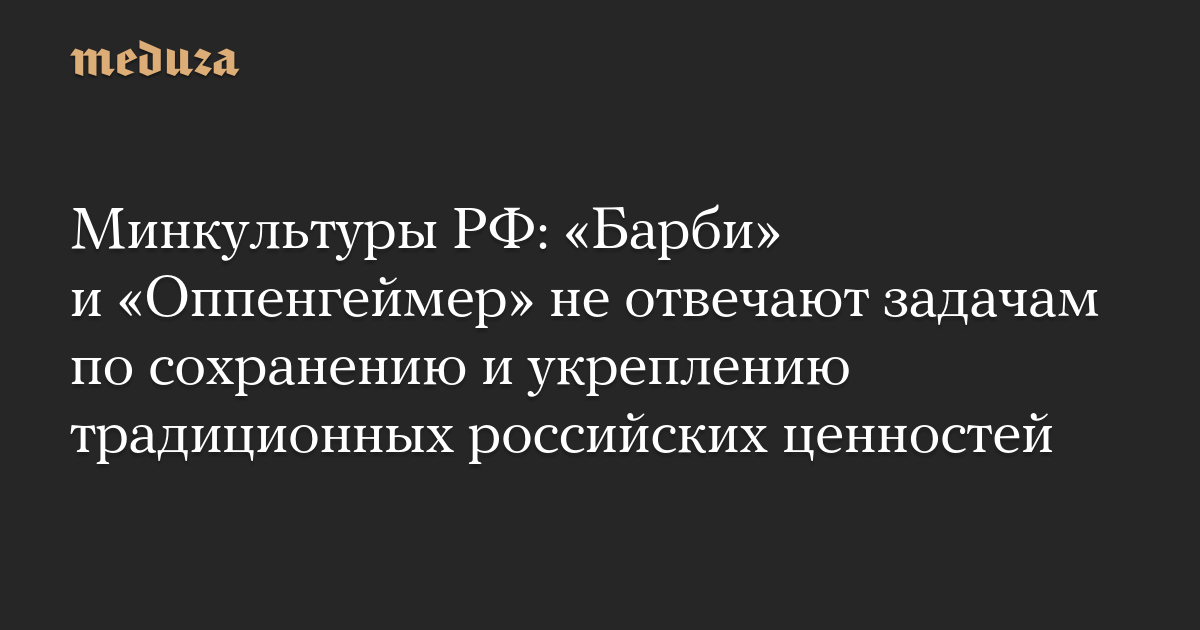 Минкультуры РФ: «Барби» и «Оппенгеймер» не отвечают задачам по сохранению и укреплению традиционных российских ценностей