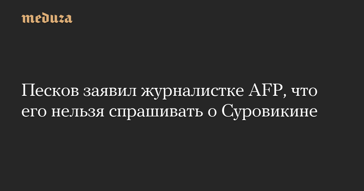 Песков заявил журналистке AFP, что его нельзя спрашивать о Суровикине