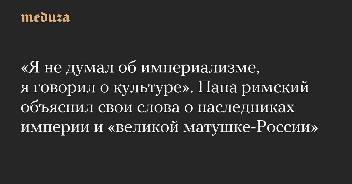 «Я не думал об империализме, я говорил о культуре». Папа римский объяснил свои слова о наследниках империи и «великой матушке-России»