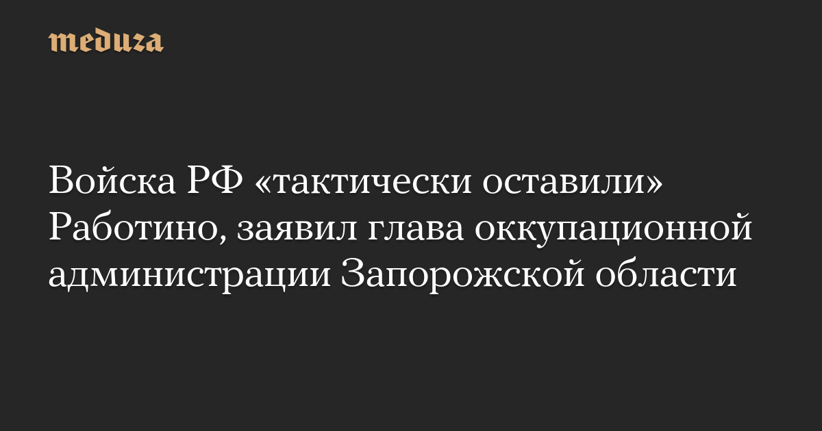 Войска РФ «тактически оставили» Работино, заявил глава оккупационной администрации Запорожской области
