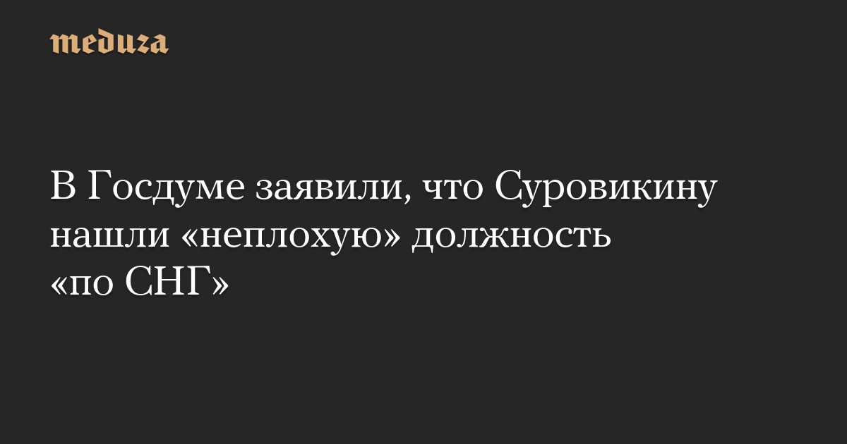 В Госдуме заявили, что Суровикину нашли «неплохую» должность «по СНГ»