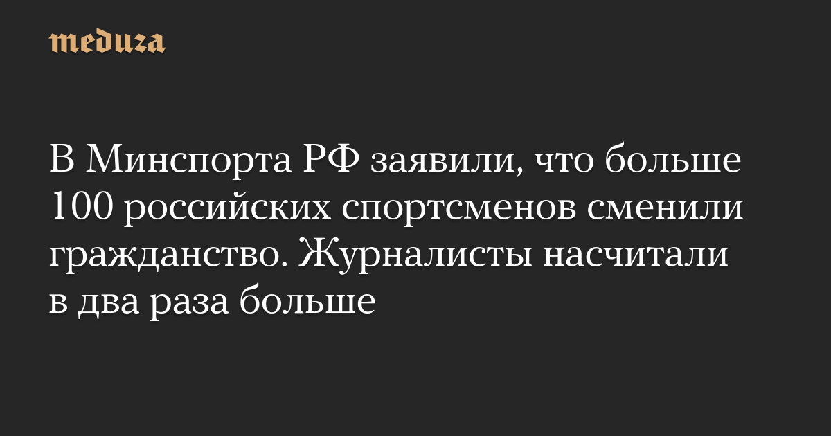 В Минспорта РФ заявили, что больше 100 российских спортсменов сменили гражданство. Журналисты насчитали в два раза больше