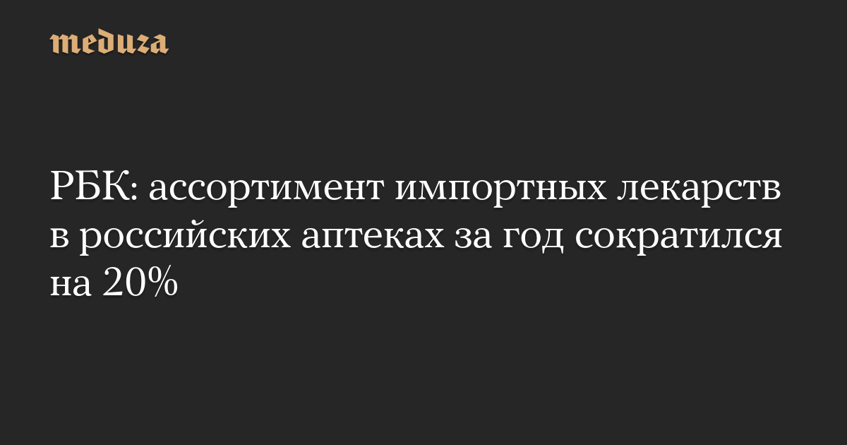 РБК: ассортимент импортных лекарств в российских аптеках за год сократился на 20%