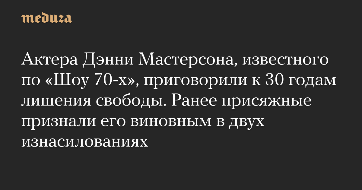 Актера Дэнни Мастерсона, известного по «Шоу 70-х», приговорили к 30 годам лишения свободы. Ранее присяжные признали его виновным в двух изнасилованиях