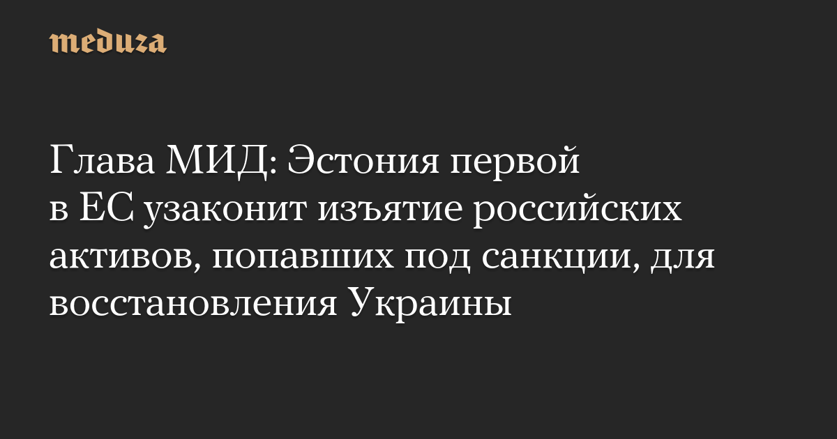 Глава МИД: Эстония первой в ЕС узаконит изъятие российских активов, попавших под санкции, для восстановления Украины