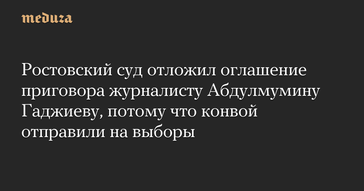 Ростовский суд отложил оглашение приговора журналисту Абдулмумину Гаджиеву, потому что конвой отправили на выборы